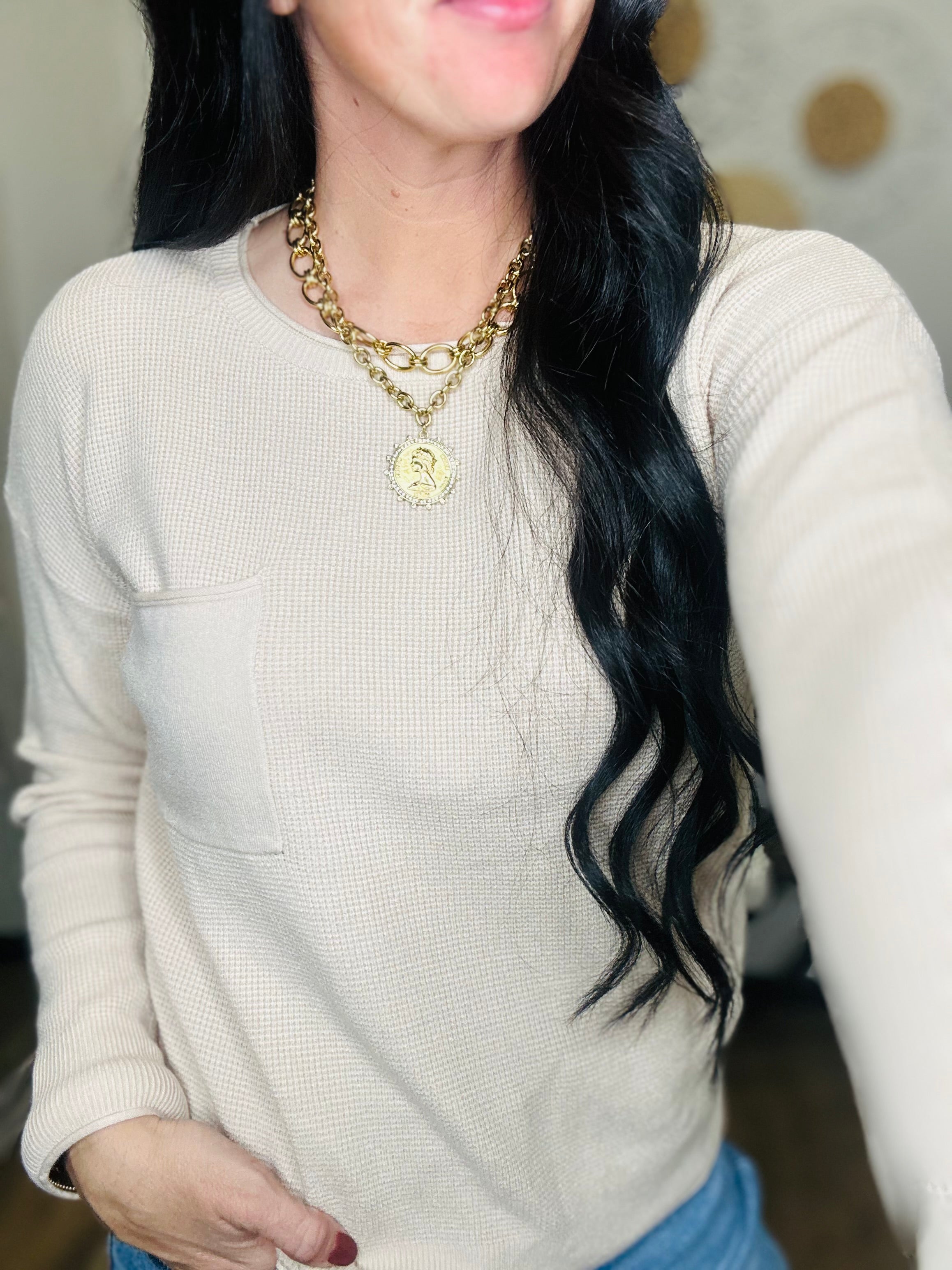 Jayla Long Sleeve Waffle Top in Oatmeal