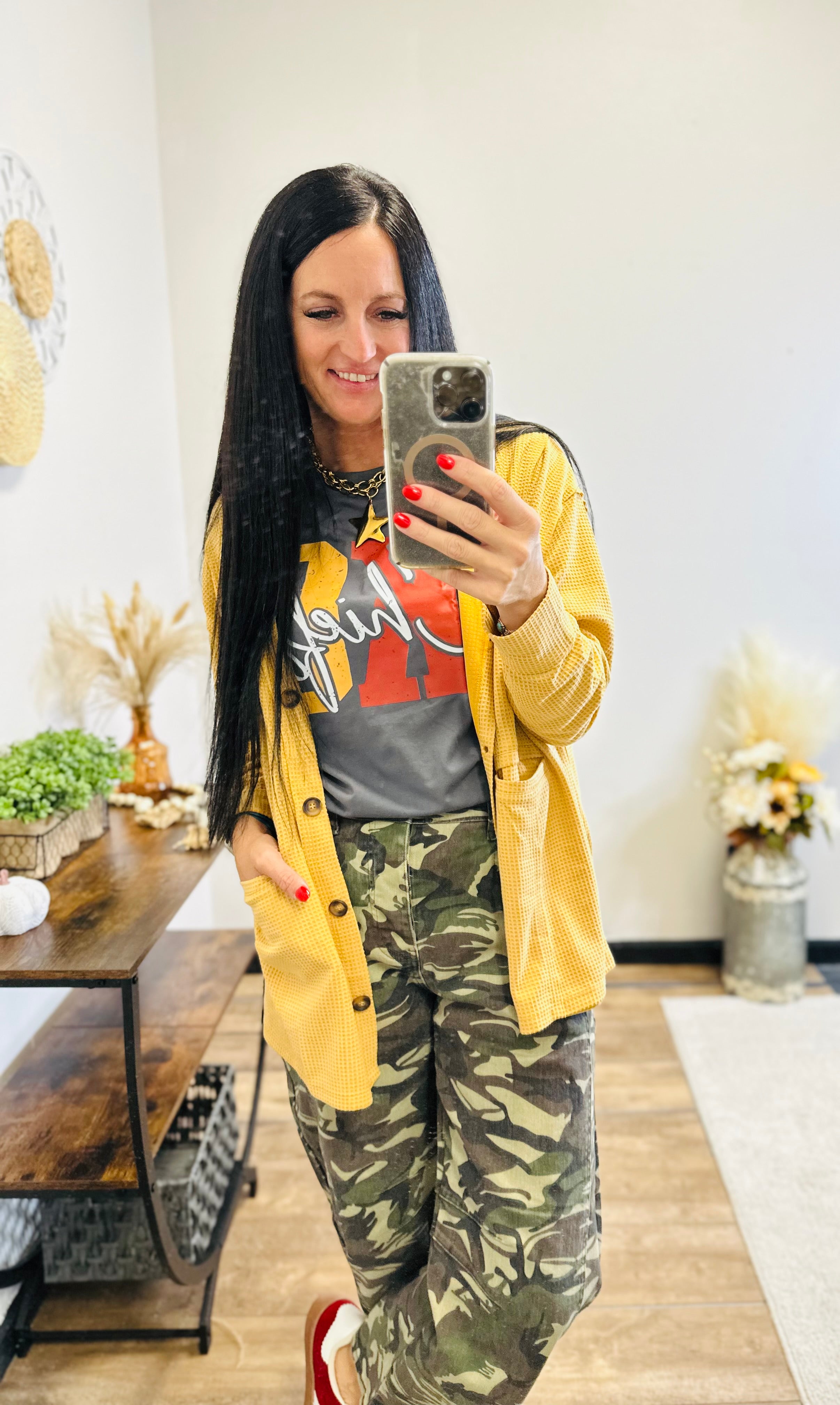 Layer up in effortless style with our Thermal Button Front Cardigan – Charm. Designed with transitional weather in mind, this cozy yet breathable cardigan is made from a soft two-tone thermal knit that feels as good as it looks. The button-front design adds versatility—wear it open over a tee or buttoned up for a polished, classic vibe. Subtle contrast details give it that little extra flair that makes it anything but basic.