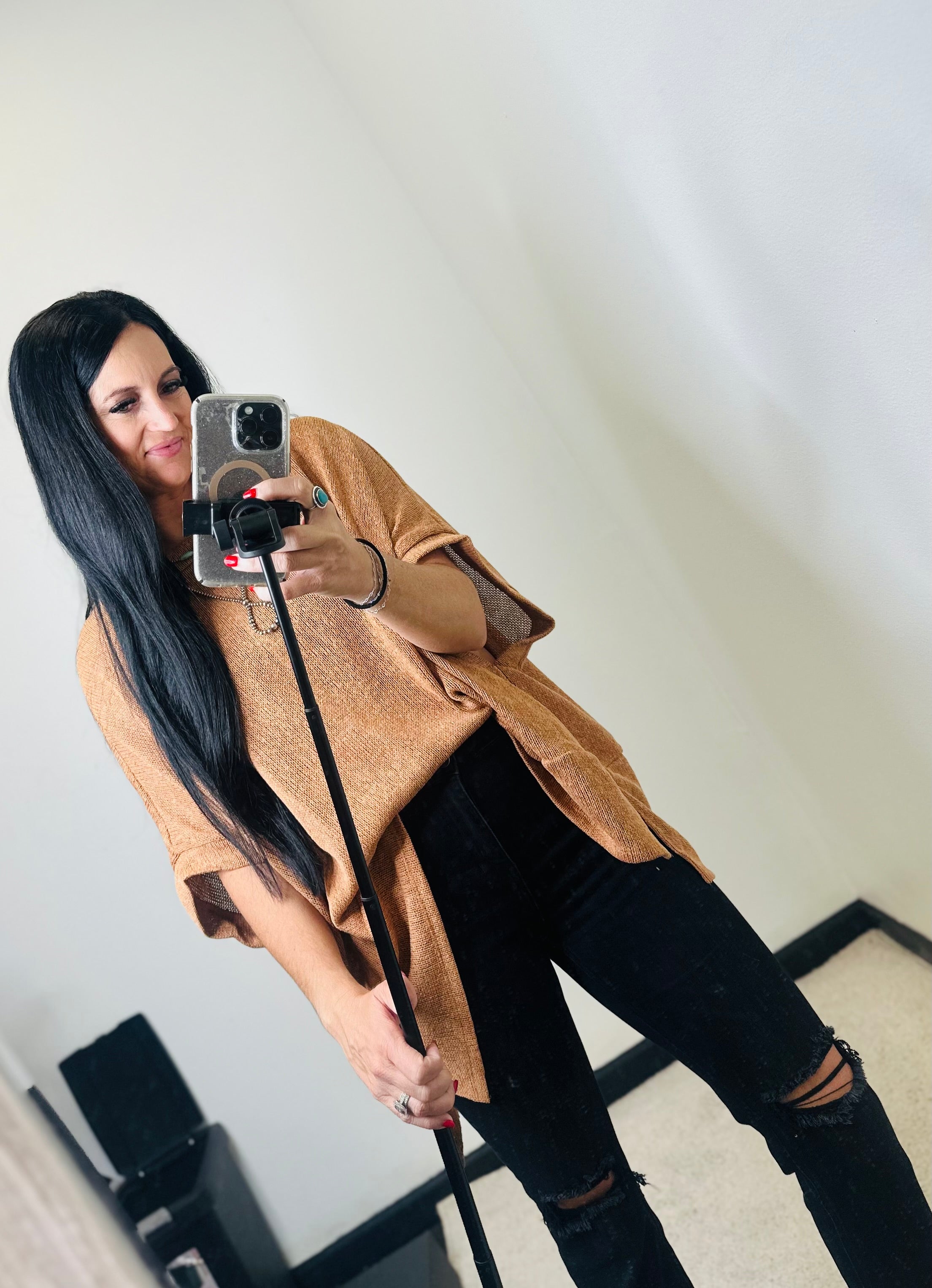 Lightweight Poncho Style Top in Toffee - The Briar
