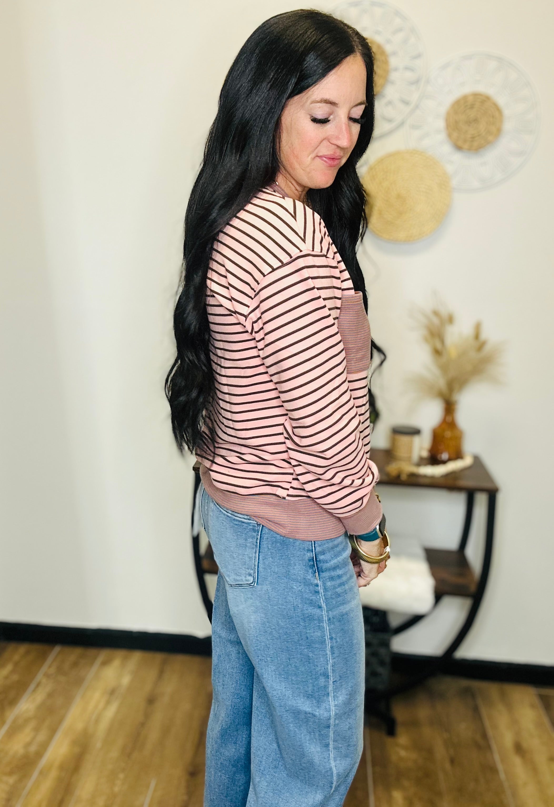 Nina Pink Stripe Brushed Pullover | Motis and Co Boutique – Motis & CO