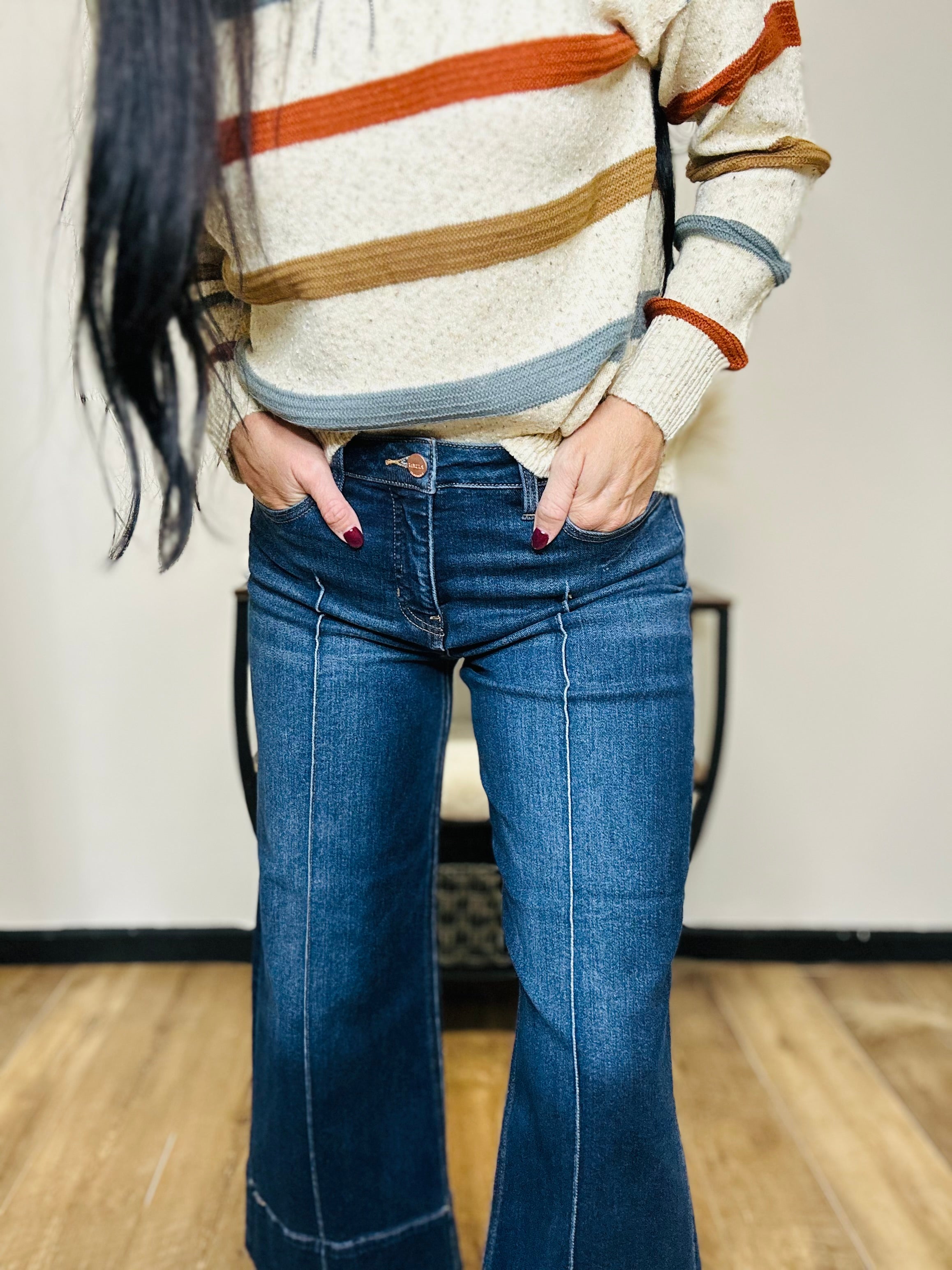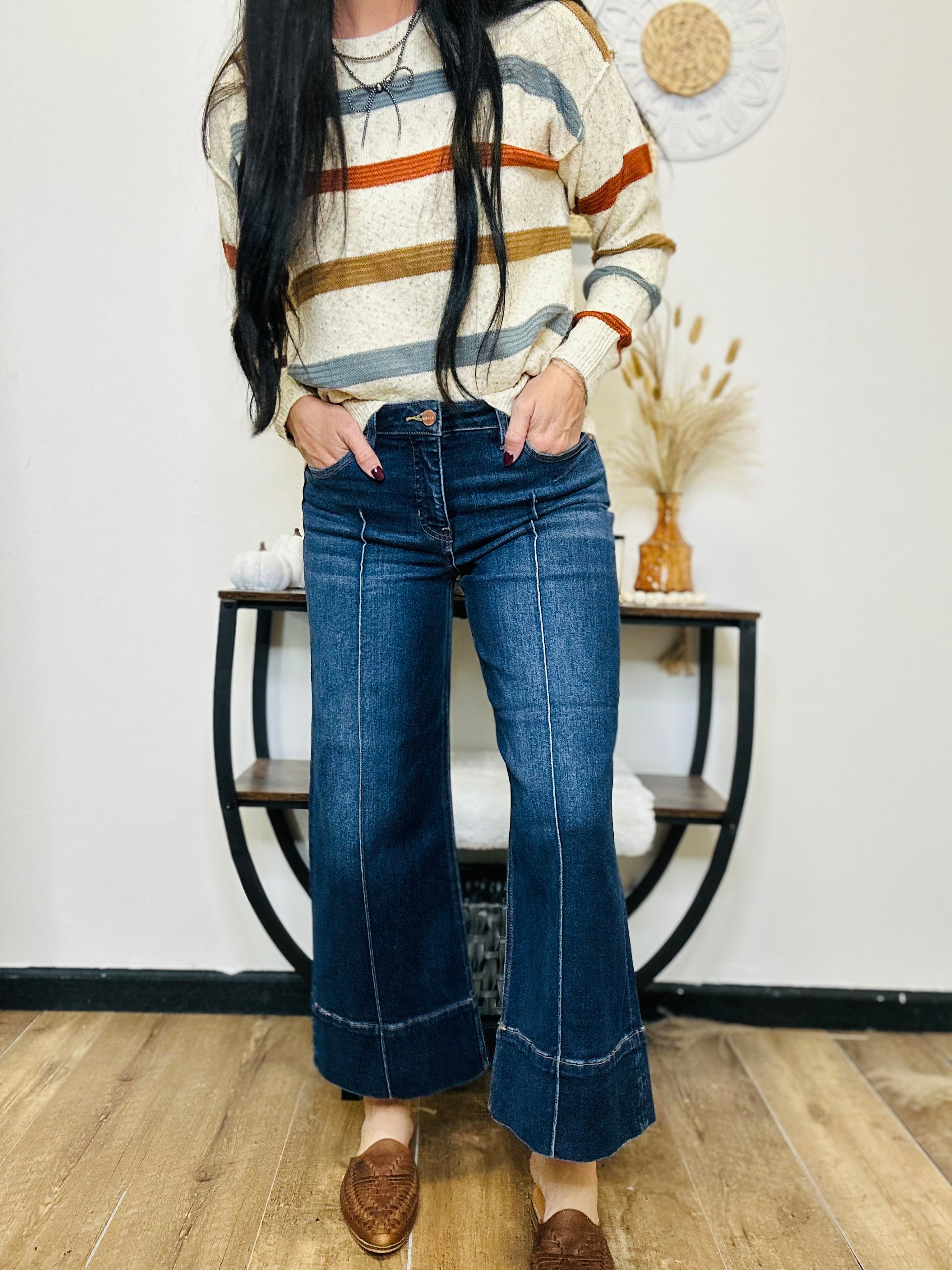 Meet your new “feel-good” jeans — Rip brings together the structure you want with the comfort you need. These Risen jeans feature a flattering mid-rise fit with built-in tummy control (so you feel confident and smoothed out without losing an ounce of comfort). The pintuck front detail gives them that polished, tailored vibe, while the wide leg and cropped hem keep things modern and on-trend.