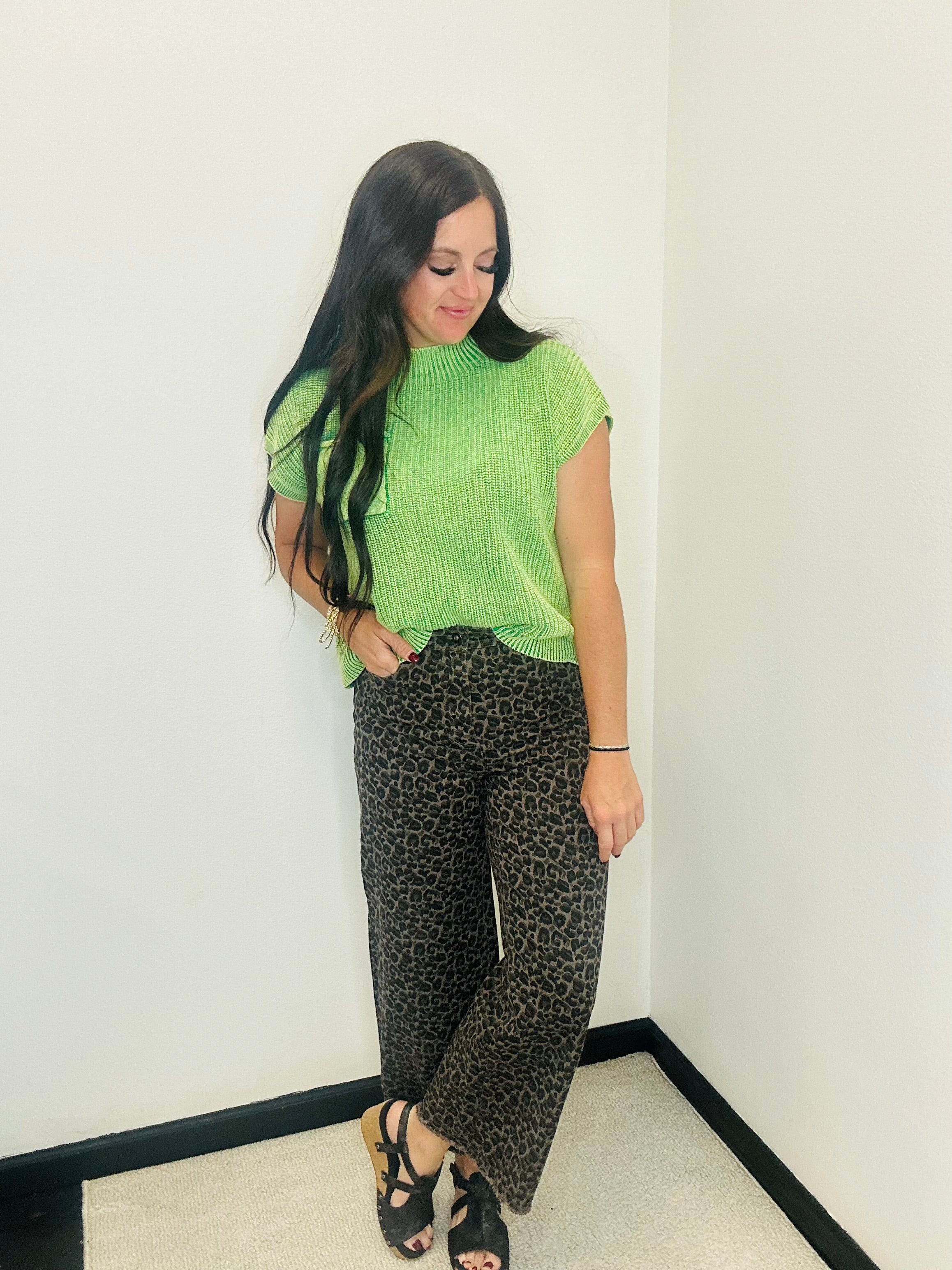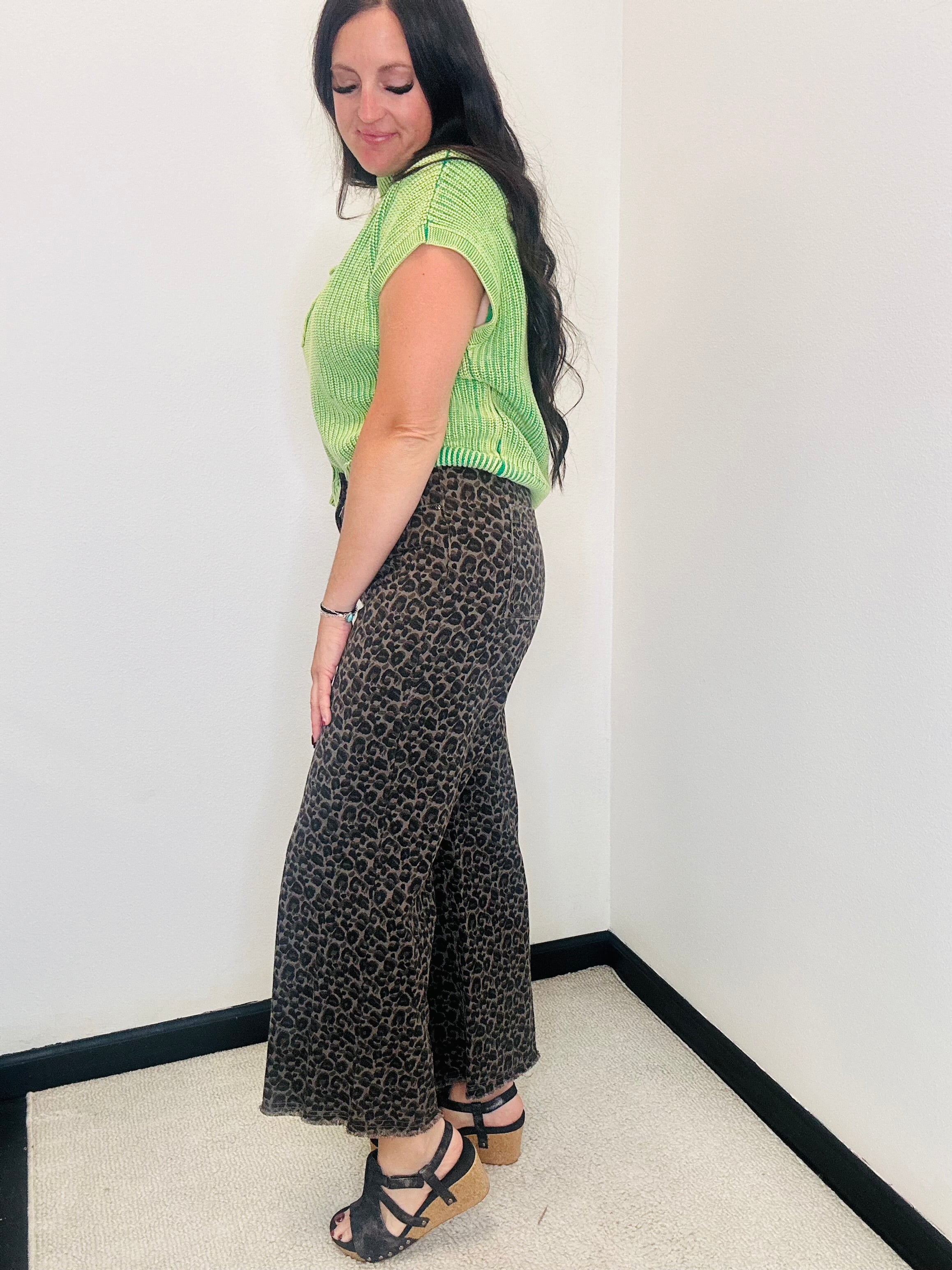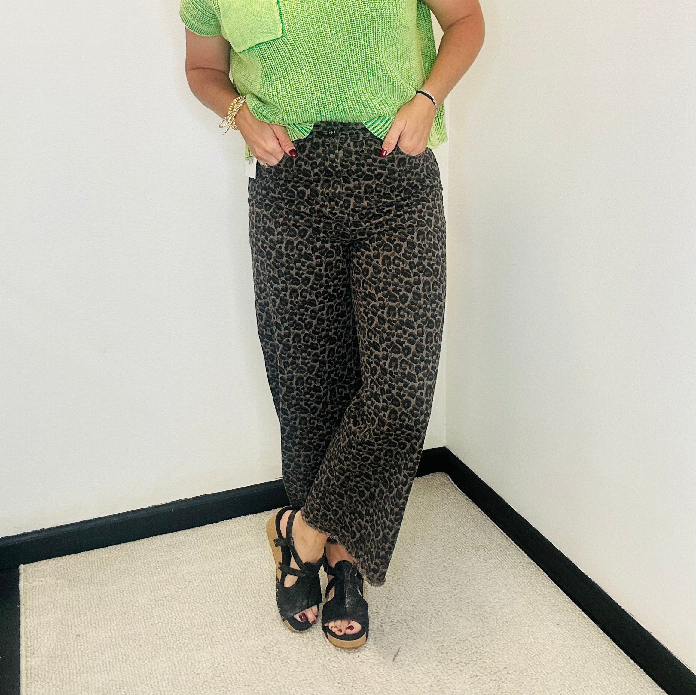 Roar with style in our Lionel Leopard Straight Jeans! With a fierce grey leopard print and trendy raw bottom hem, these straight leg jeans will make a statement. Featuring 5 pocket styling, button and zip front, and a back elastic waist for comfort. Unleash your inner fashionista!