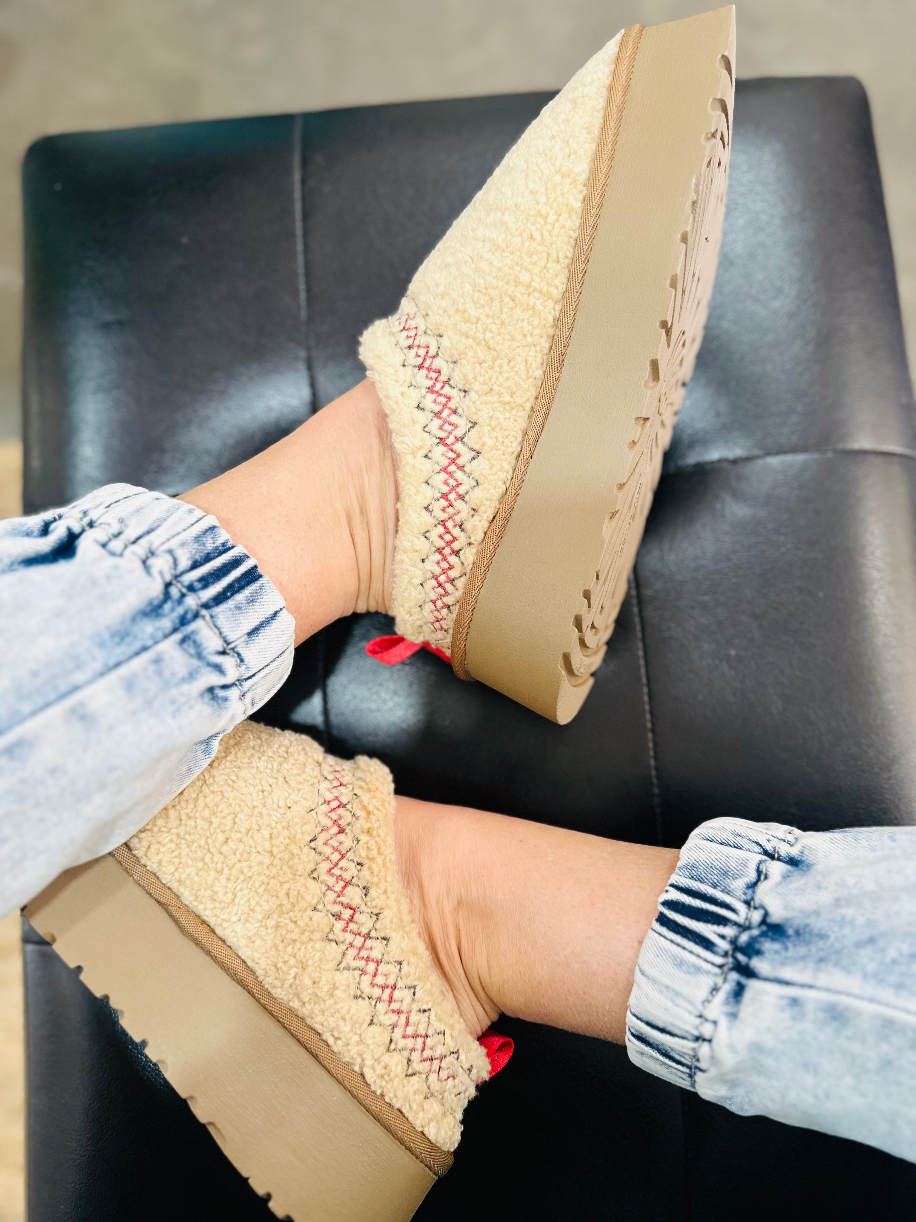 Slip into ultimate comfort and trendiness with our Oakley Sherpa Platform Mules. The plush Sherpa upper, cushioned insole, and soft lining provide all-day coziness, while the embroidered detailing and platform sole add a touch of style. These slides are perfect for a playful and comfy look.