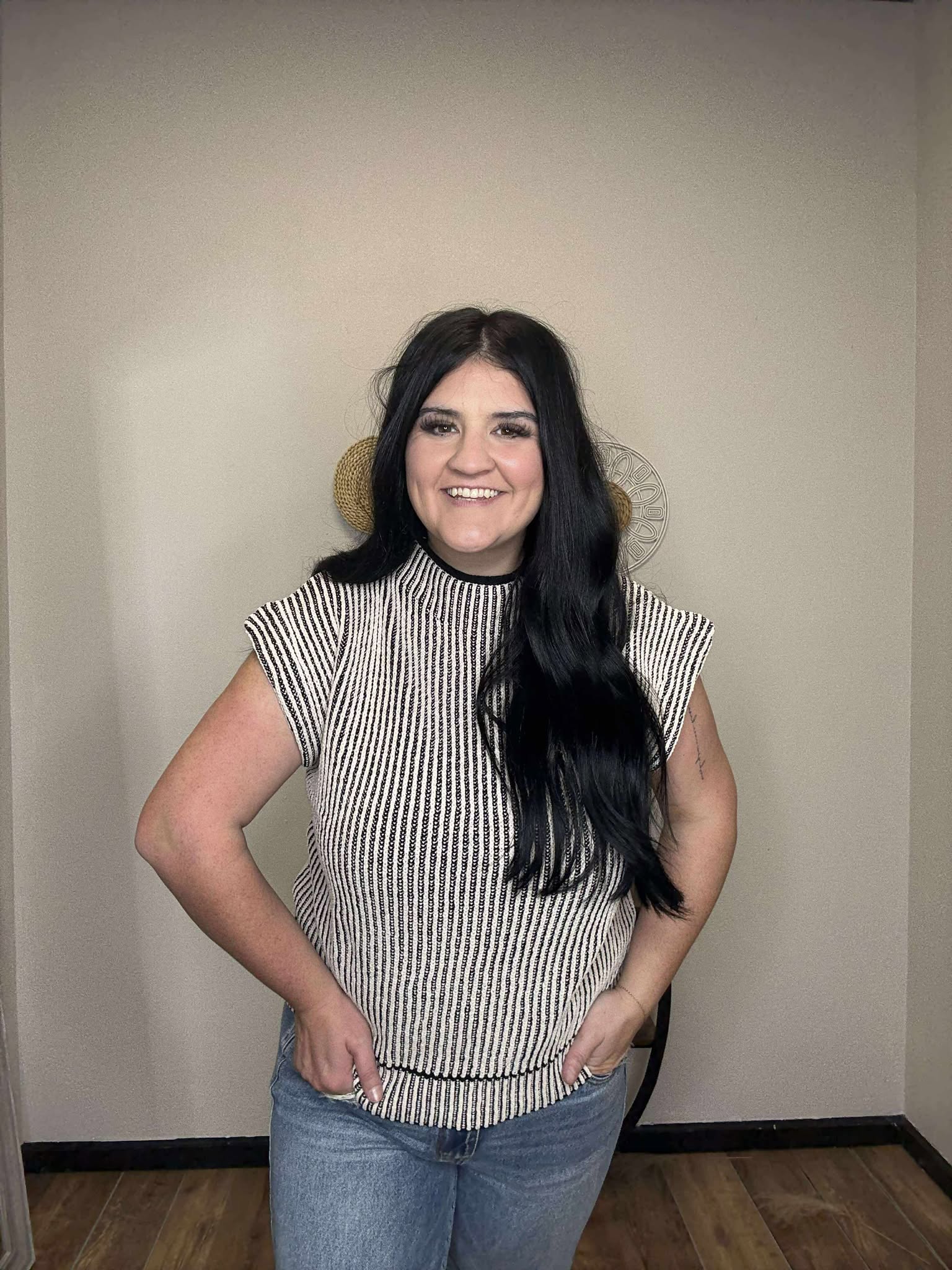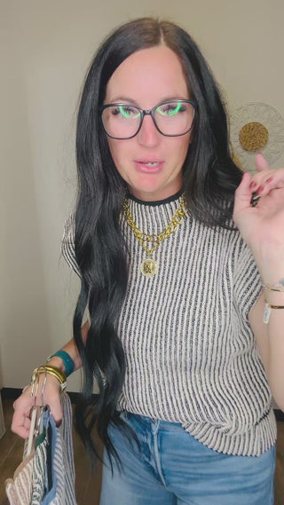 Meet your new layering favorite—the Finley Sweater Vest. Designed in a soft two-tone black ribbed knit, this sleeveless mock neck vest brings a touch of modern sophistication to any outfit. Its structured yet cozy texture makes it perfect for styling over button-down shirts, long sleeves, or even a simple tee. Whether you’re dressing for the office or keeping it casual, this vest adds effortless polish to your look all season long.