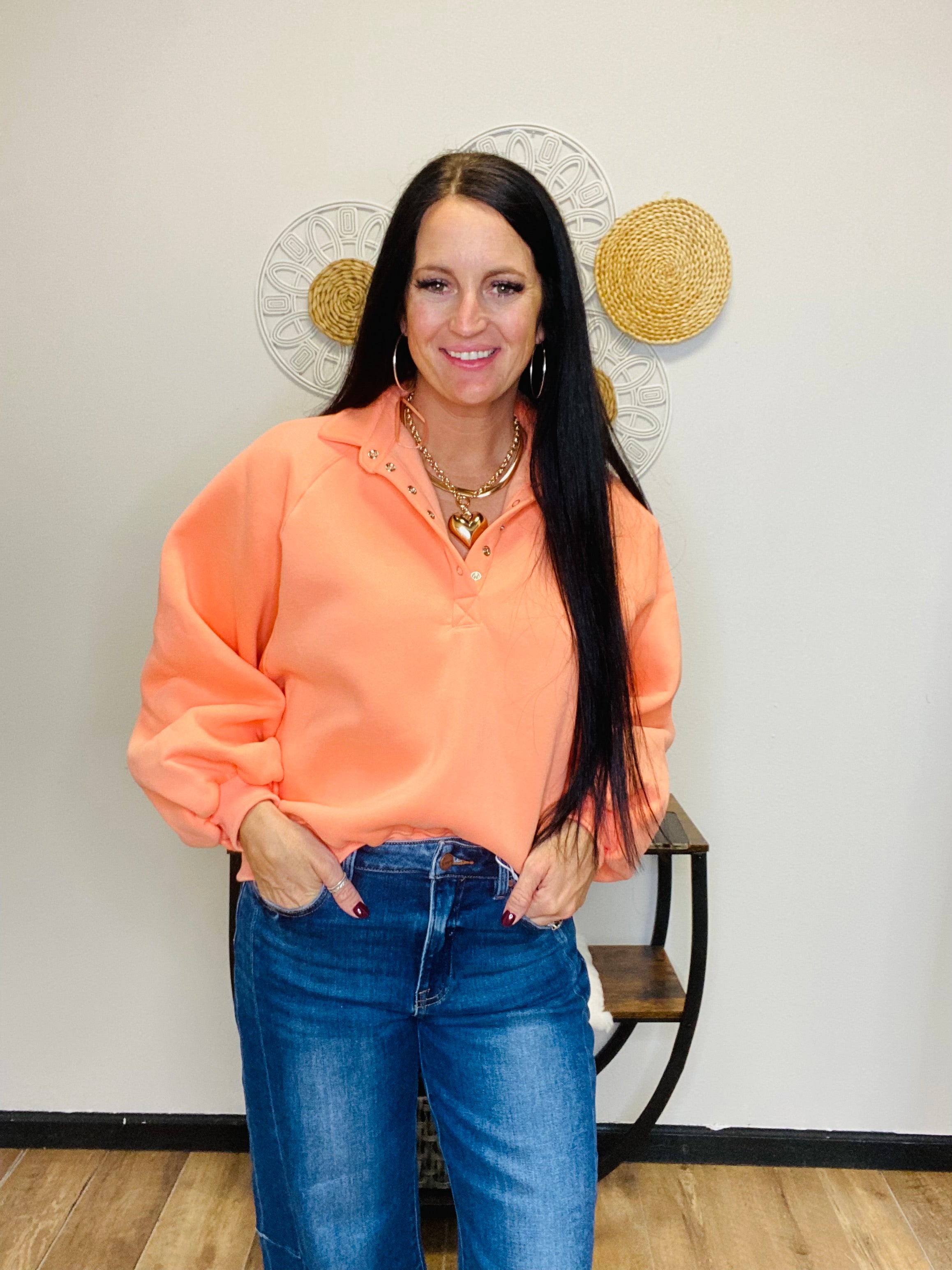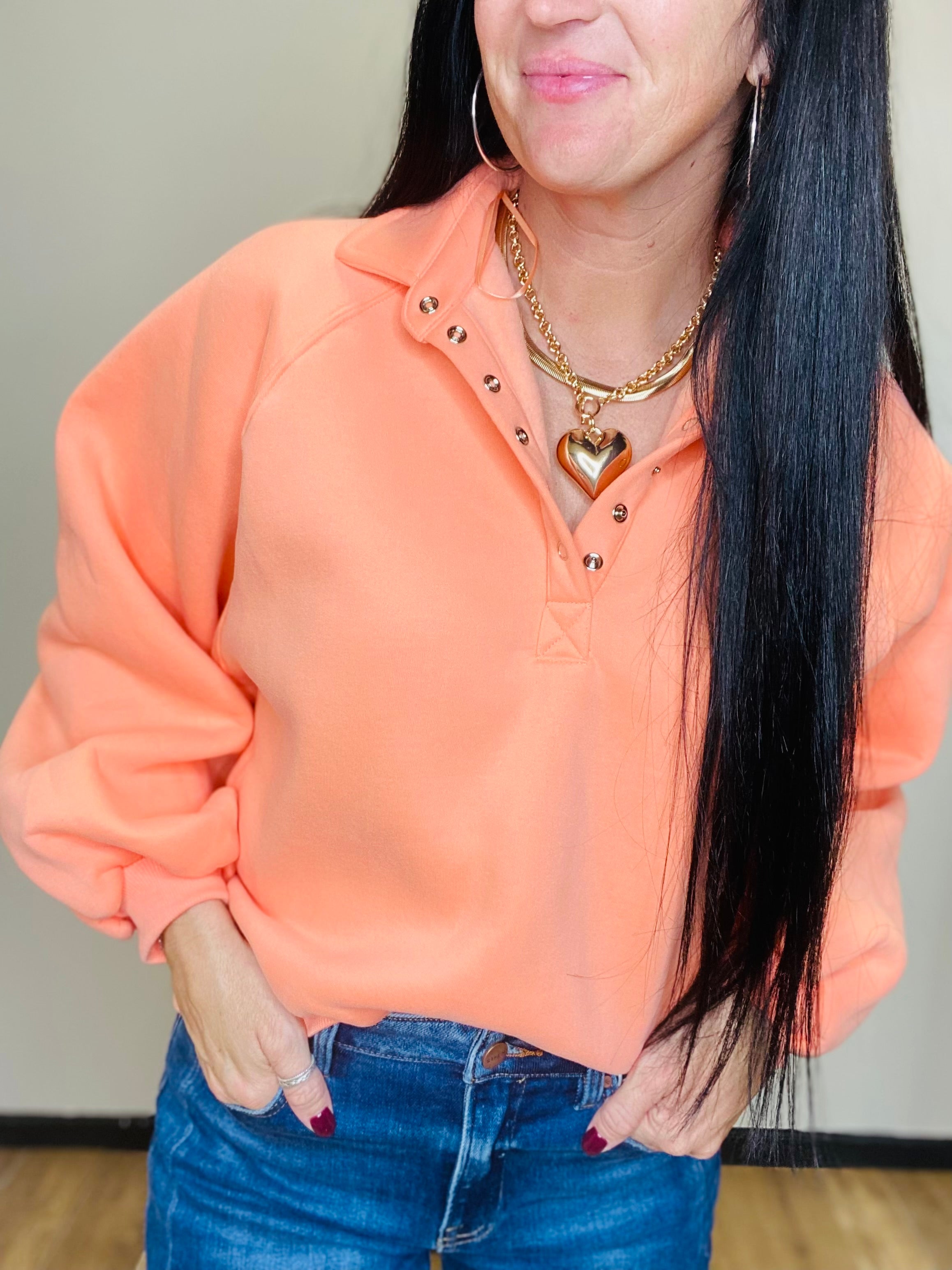 Lulu Coral Snap Button Collared Sweatshirt