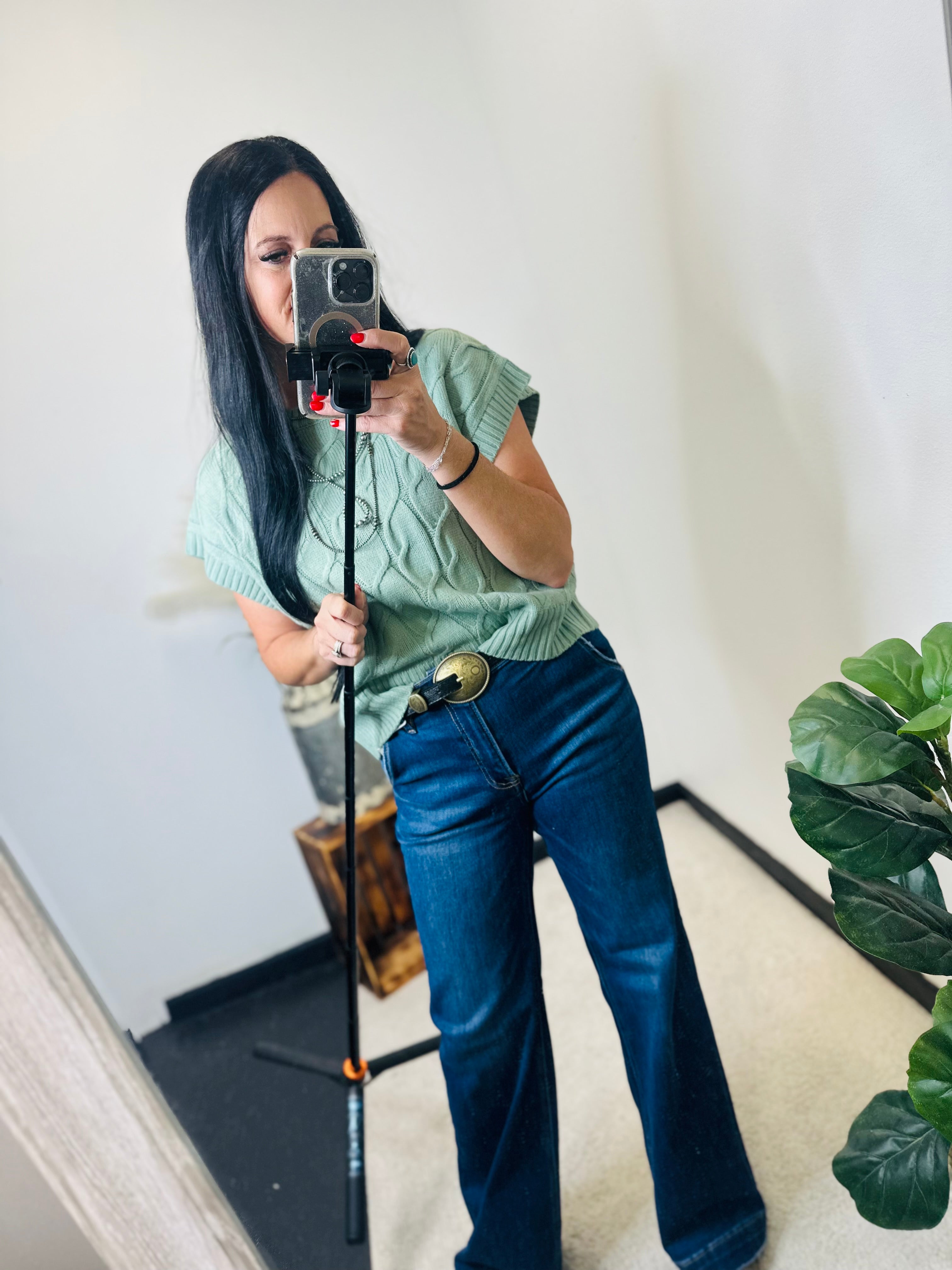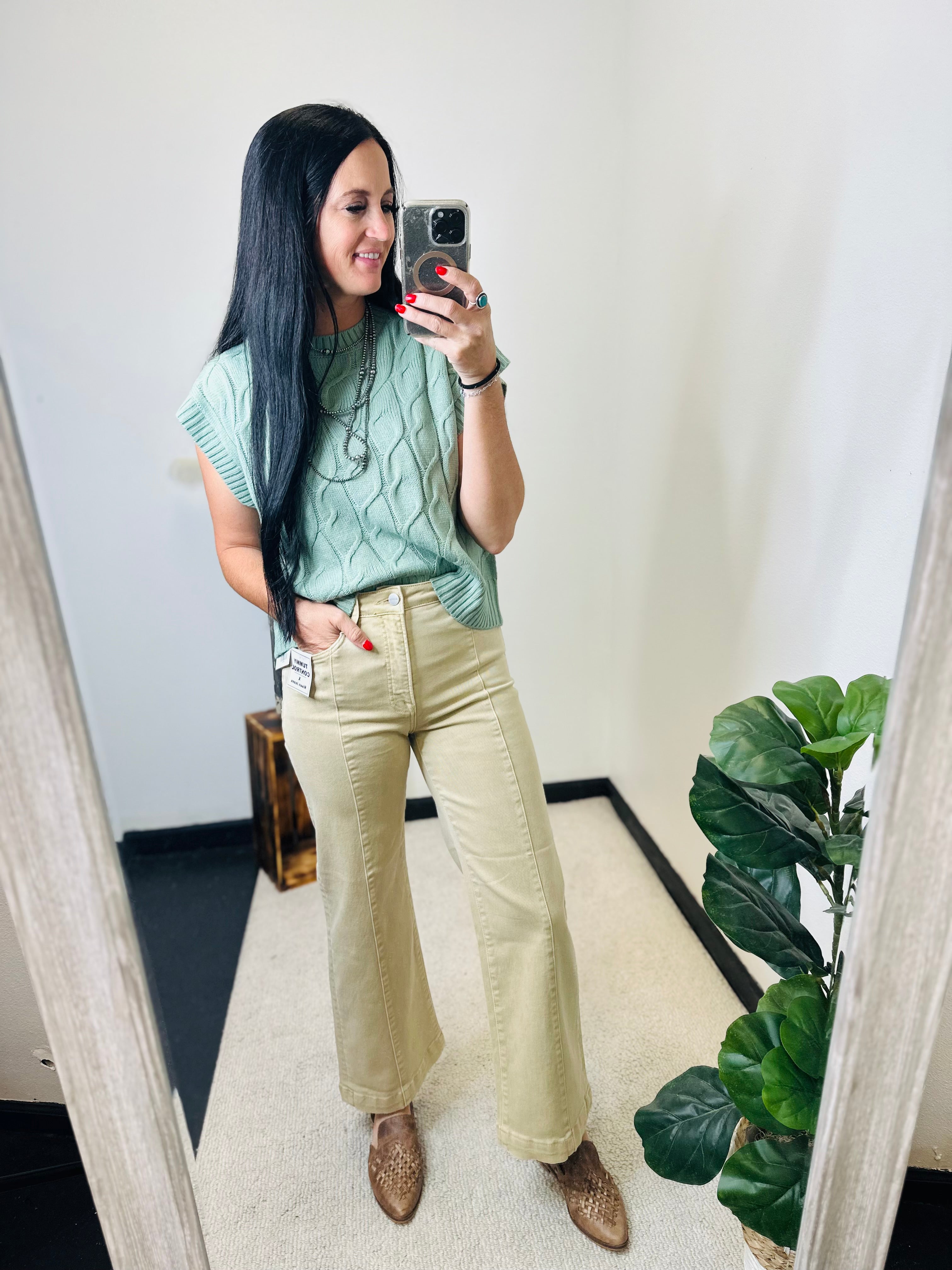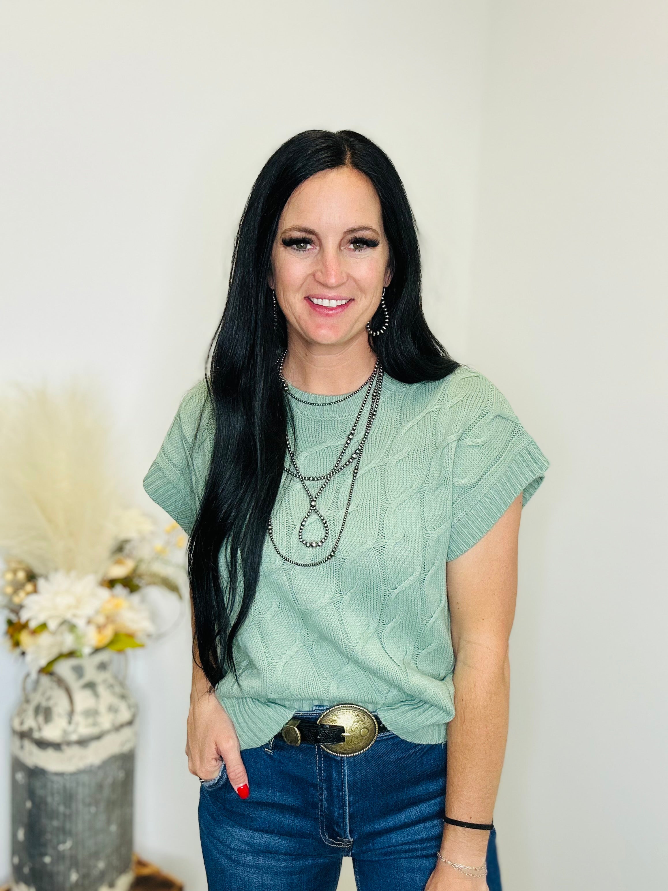 Sleeveless Cable Knit Sweater Vest in Sage - Luna