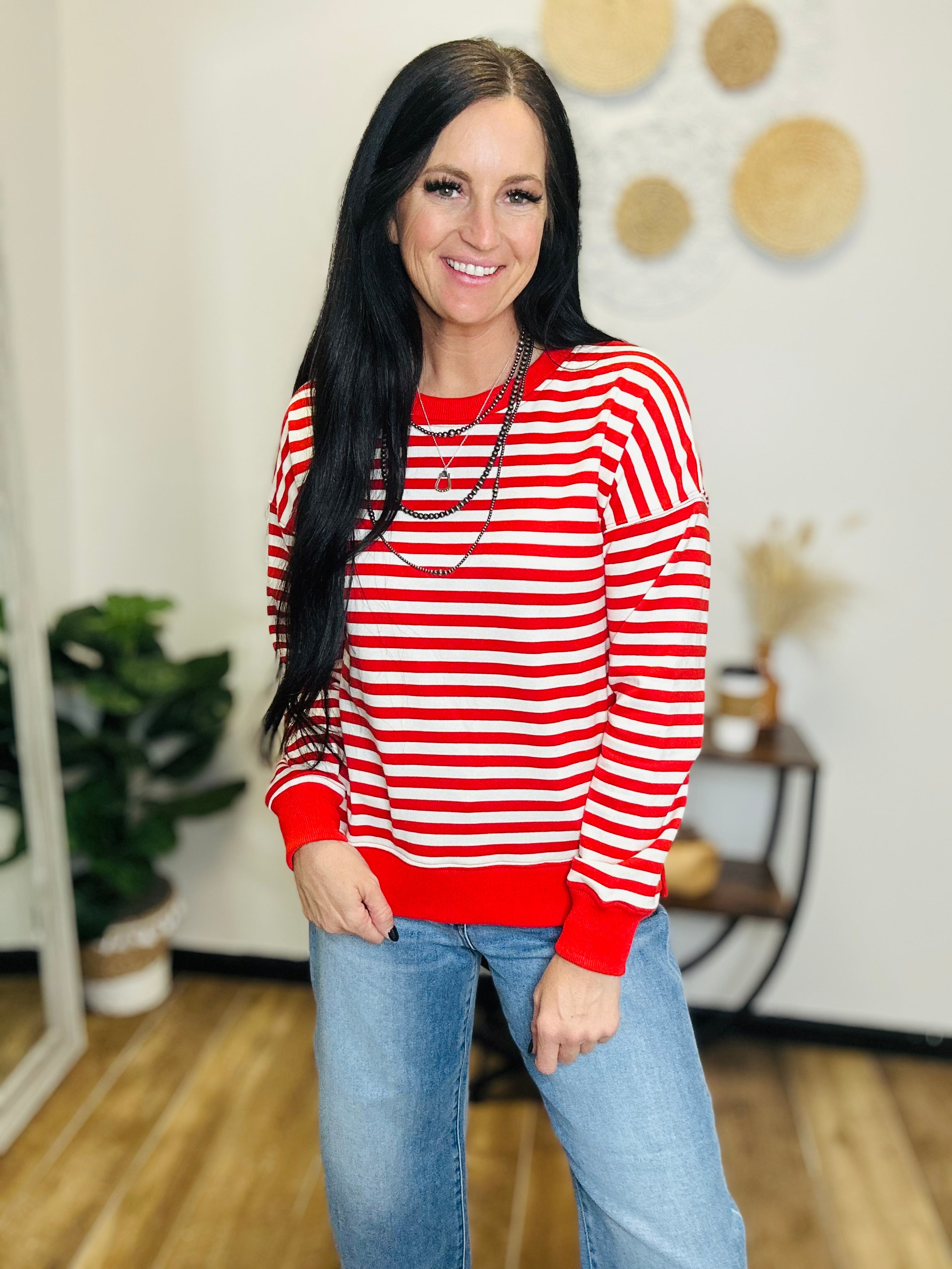 Red Striped Crew Neck Pullover | Motis & Co Women's Boutique – Motis & CO