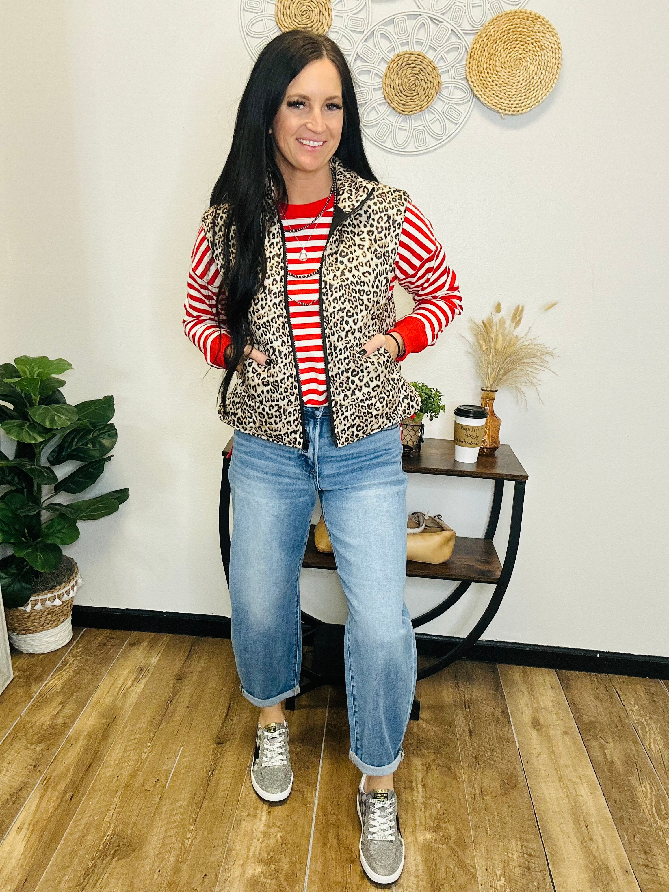 Meet Barb – your new “throw it on and still look put together” pullover. This striped crew neck is made for busy days: long, leggings-friendly hem, side vents so it moves with you, and that cozy sweatshirt feel you’ll grab for again and again. Style it with jeans and sneakers for errands, leggings and boots for school activities, or layer a vest over it for a little western-chic moment. Easy, comfy, done.